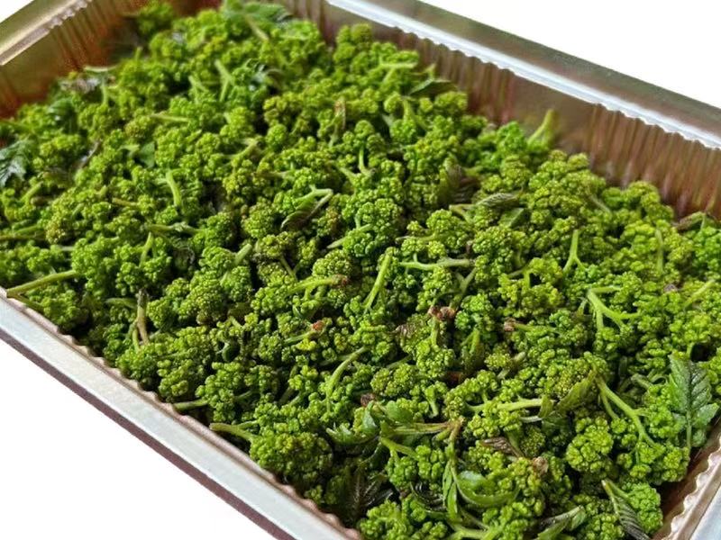 Japanese sansho flowers are small, yellowish-green blossoms that grow in dense clusters. They are characterized by an intense yet refreshing pungent aroma derived from volatile oils and aromatic compounds. Known to stimulate salivary secretion, they aid digestion and appetite enhancement, making them a prized seasoning in premium cuisine for flavor enhancement.