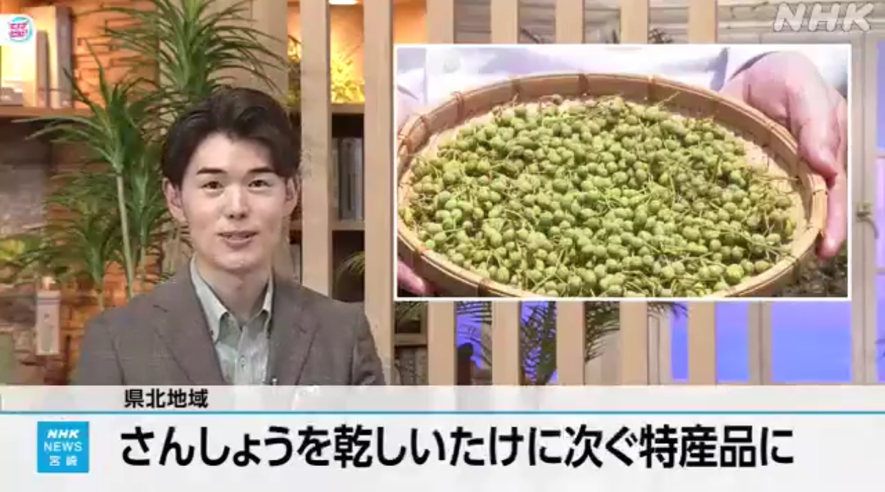 在宫崎县北部地区,一个旨在将用作香料原料的"山椒"培育成仅次于干香菇的当地特产的产业项目正在推进。8日,高千穂町首次进行了山椒果实的采收。